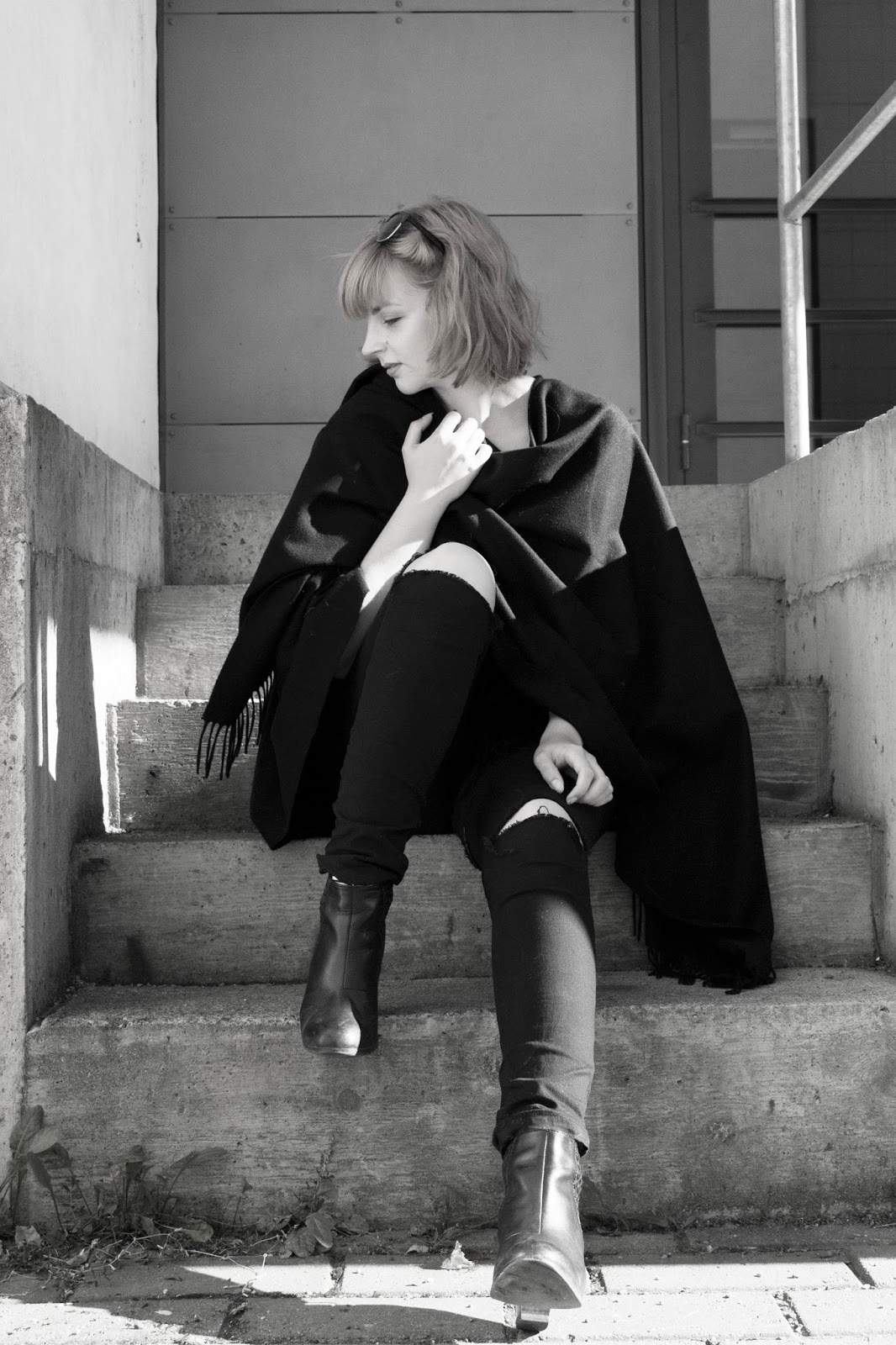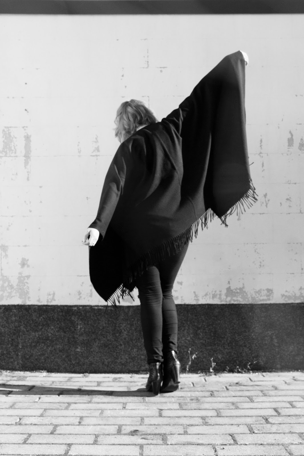 Tykkään pukeutumisessa käyttää kontrasteja ja yhdistää erilaisia materiaaleja toisiinsa. Niinpä pörröinen, pehmoinen neule on mielestäni loistava yhdistelmä nahkahousujen ja biker-bootsien kanssa!
